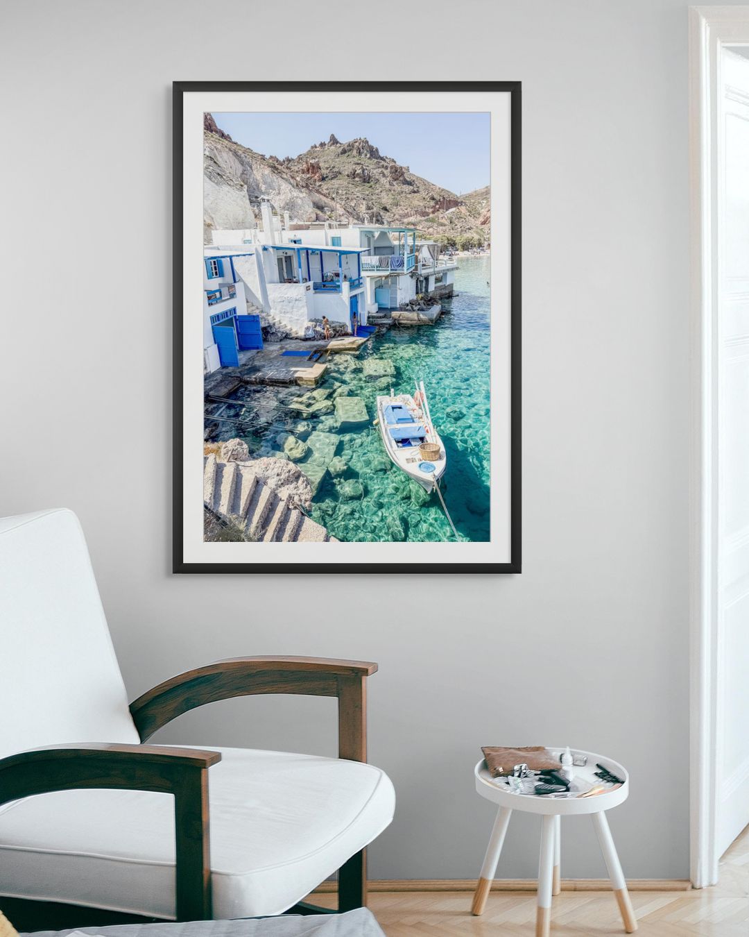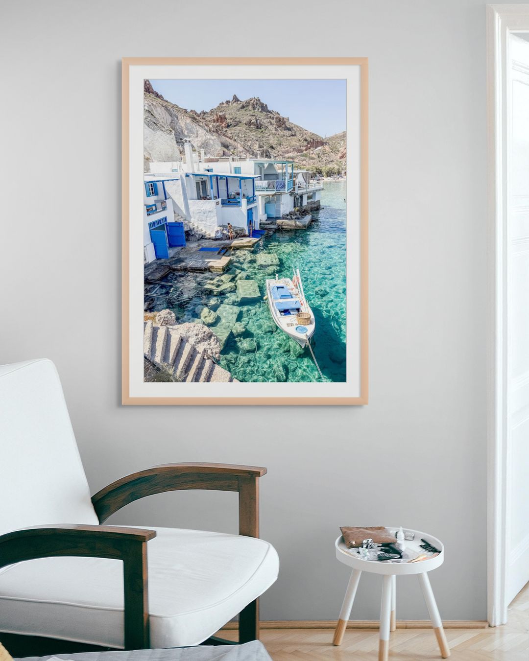 Ideal para quienes buscan una lámina que evoque el verano, la luz y la serenidad de las islas griegas.