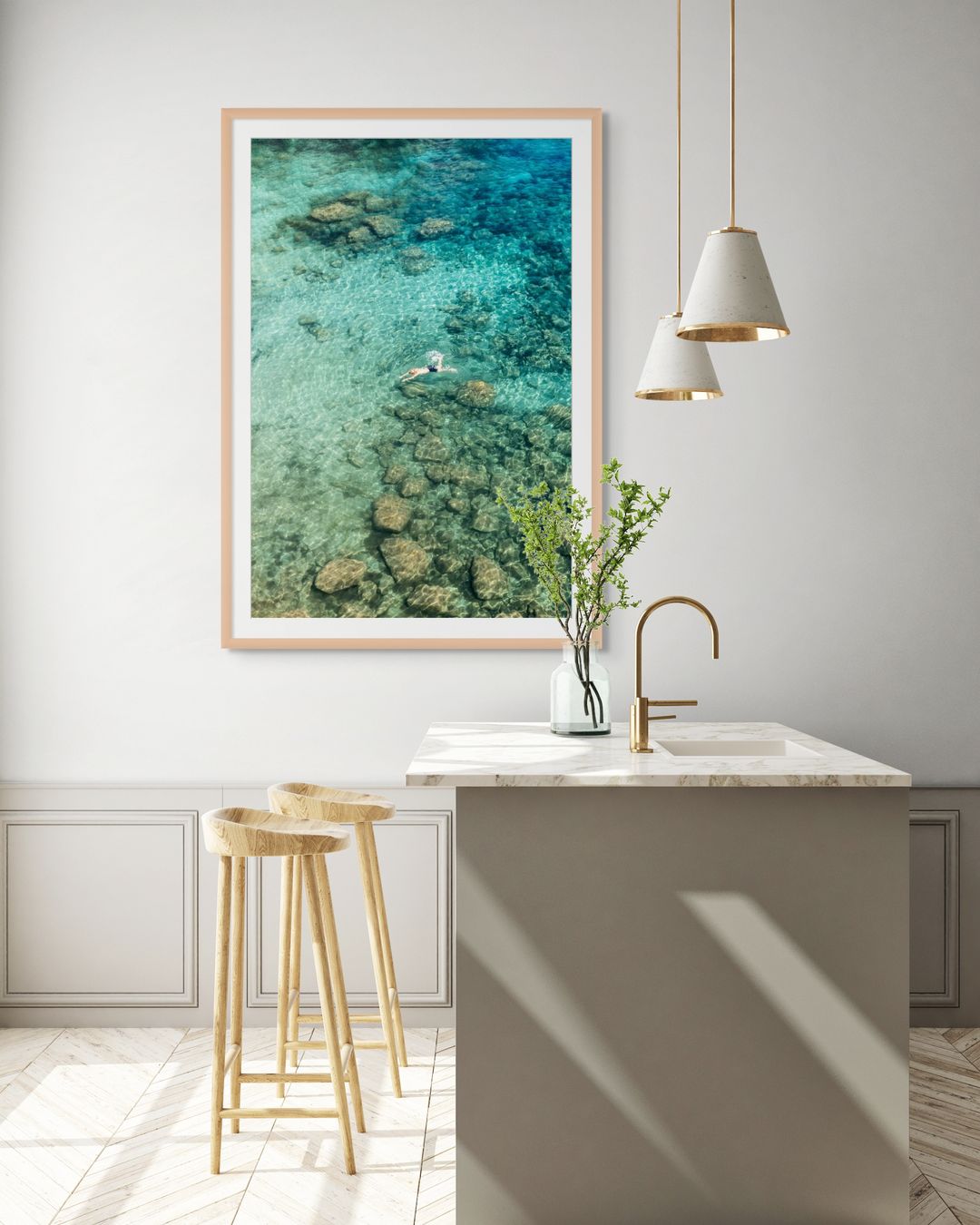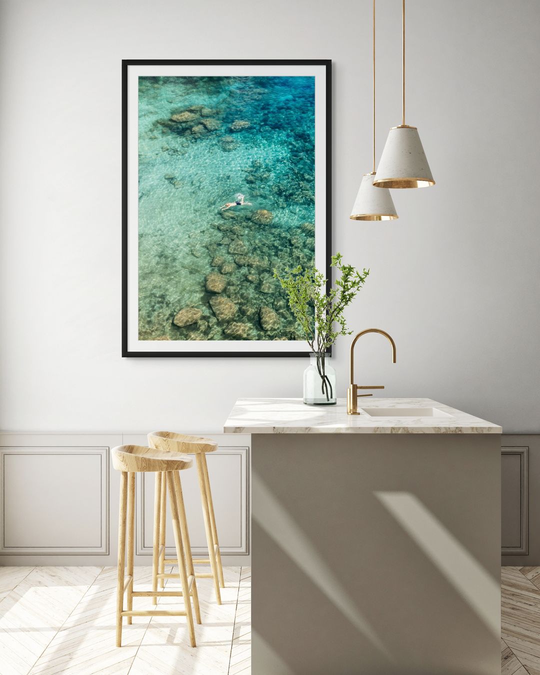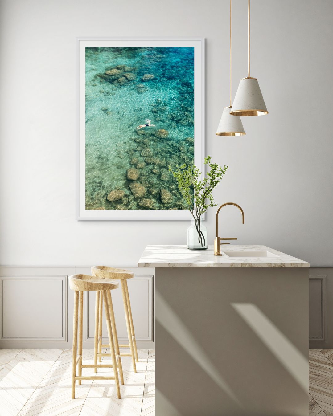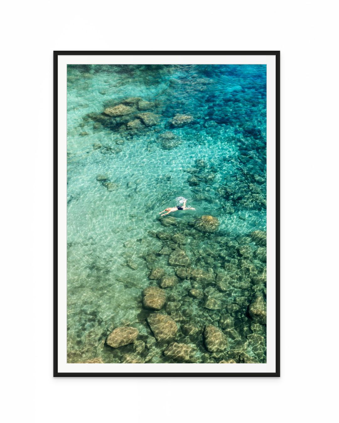 Lámina fotográfica disponible en varios tamaños, impresa en papel premium de alta calidad, con acabado mate y una textura sutil que realza los tonos vibrantes del mar y la vegetación, garantizando colores duraderos y naturales.